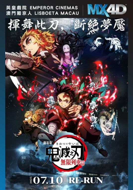 《無限列車篇》將緊接在電視動畫蜘蛛山篇之後,炭治郎帶著禰豆子,以及同期的鬼殺隊士善逸、伊之助一同接下新任務,來到短時間內出現數十名失蹤者的「無限列車」,鬼殺隊最強劍士「柱」之一的「炎柱」煉獄杏壽郎也將登場,而他們面對的,則是戰力極強的高階鬼「下弦之壹」的